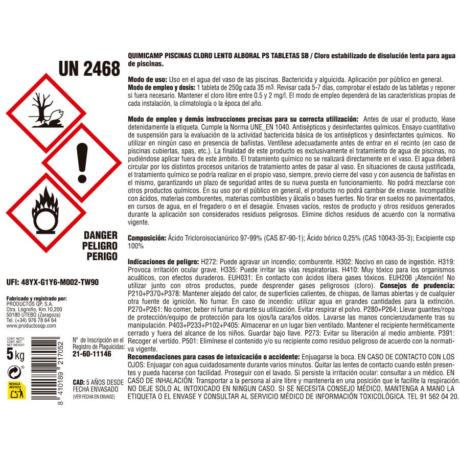 Gracias a su acción desinfectante, bactericida, y siendo de disolución lenta, mantiene en perfecto estado el agua de cualquier tipo de piscina con una cloración constante, eliminando algas y bacterias.