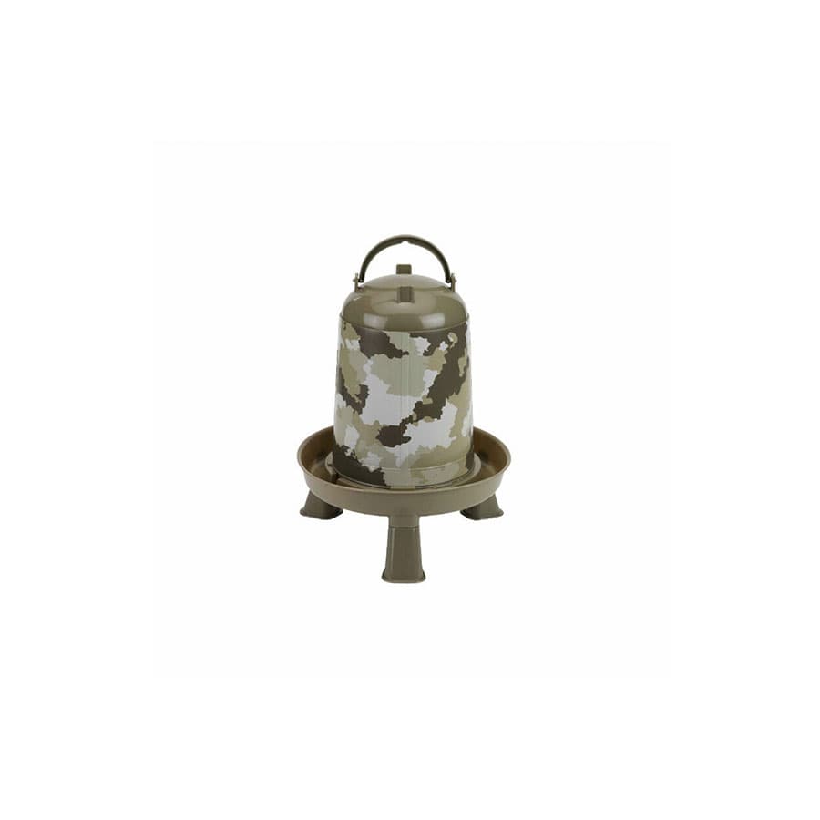 Bebedero de camuflaje tipo tolva para aves con patas.