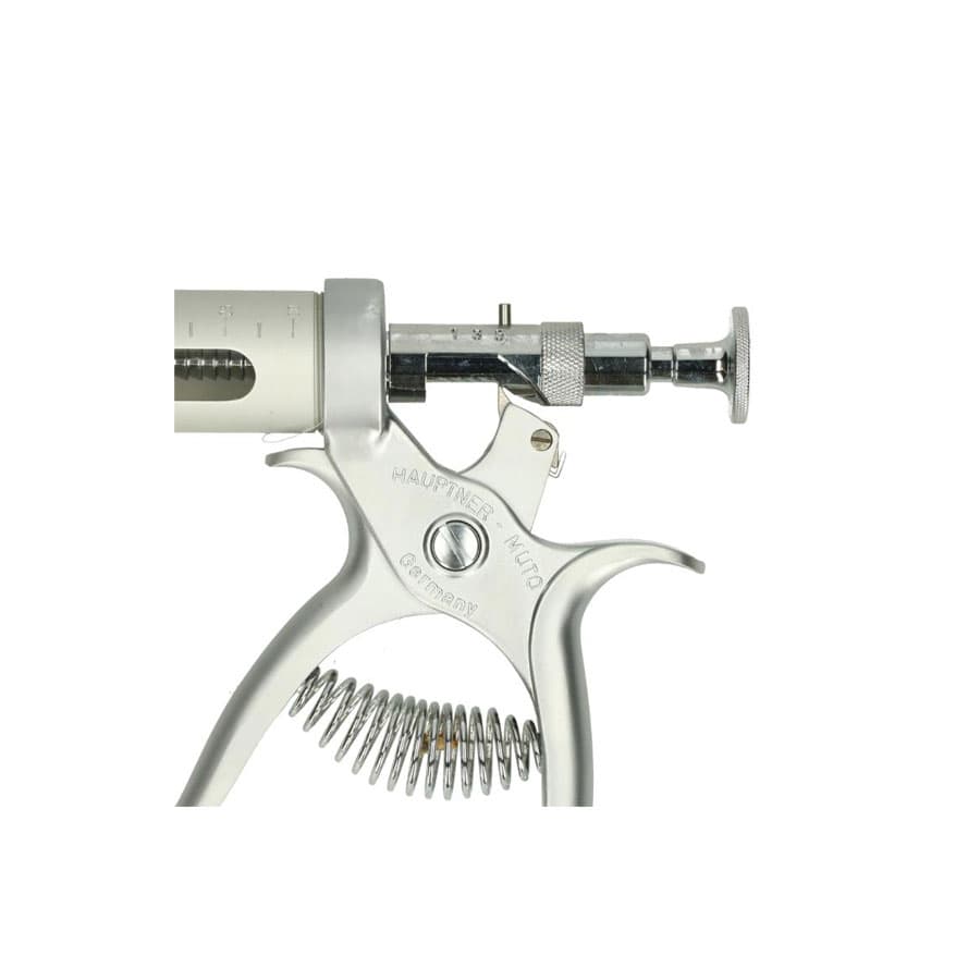 Jeringa de revolver modelo Hauptner para inyectar líquidos en animales.